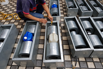 施工中-送風機風鼓清洗